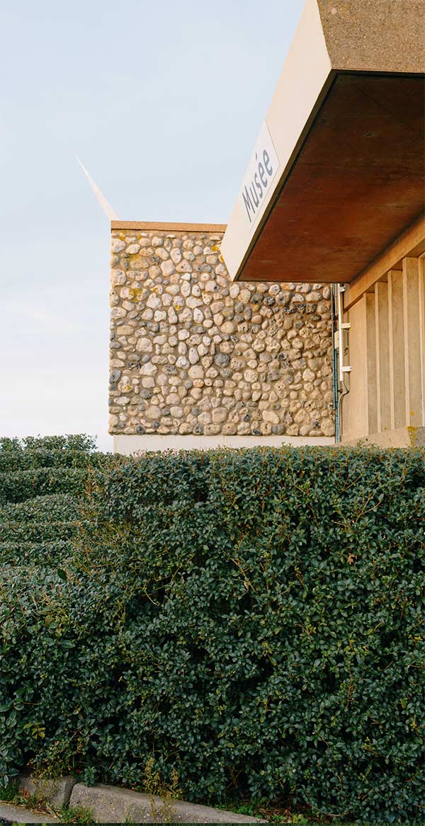 The whimsical feel of Villa Esther begins with the Neo-Modern gateway in the style of Le Corbusier's Villa Savoye.