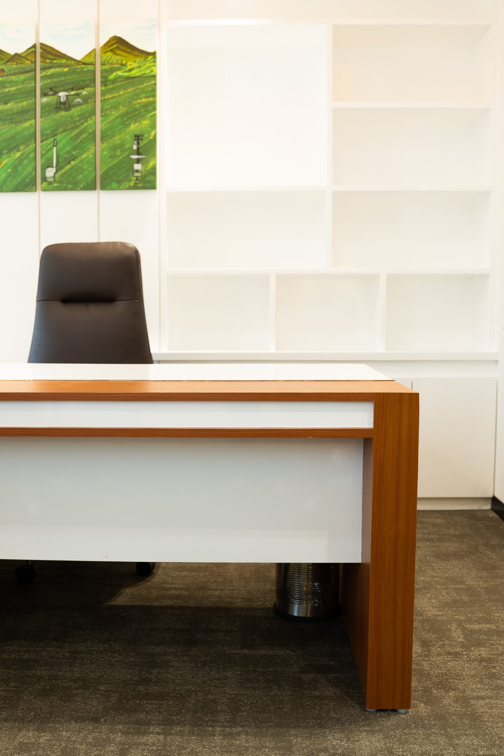 The predominant color palette of light beige sets the stage for a serene and calming atmosphere. This neutral hue not only evokes a sense of understated sophistication but also serves as a canvas for the strategic integration of minimalist design elements. The result is an office space that radiates both warmth and professionalism.