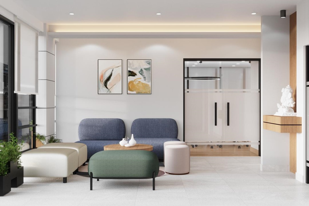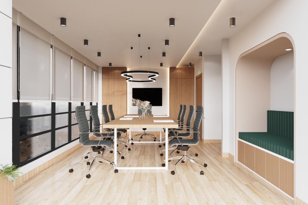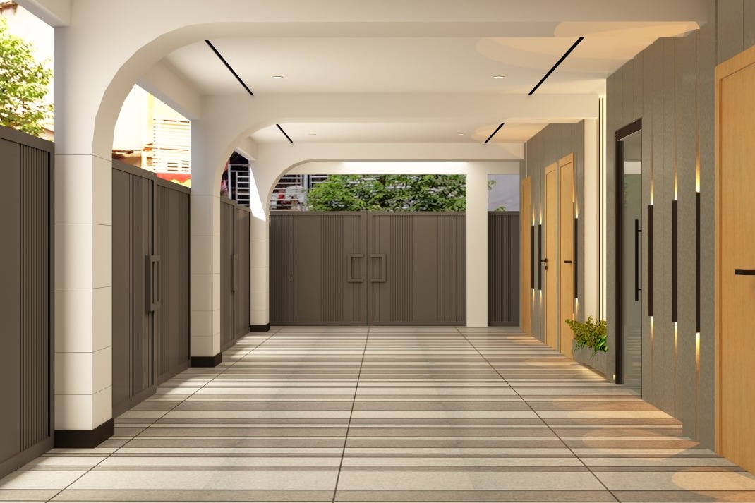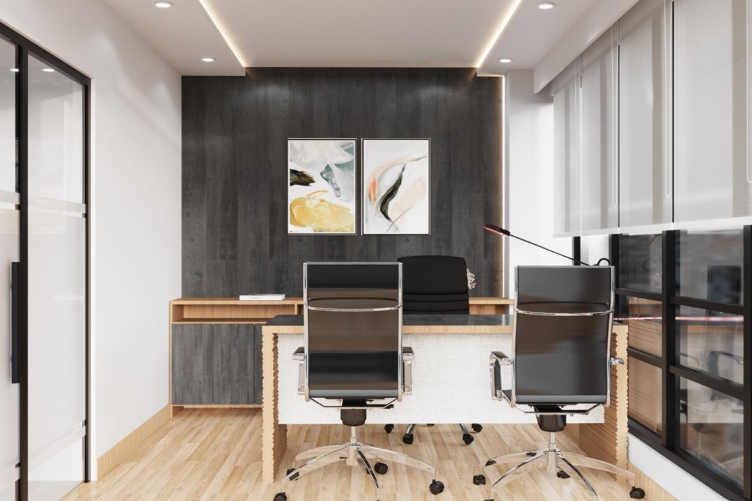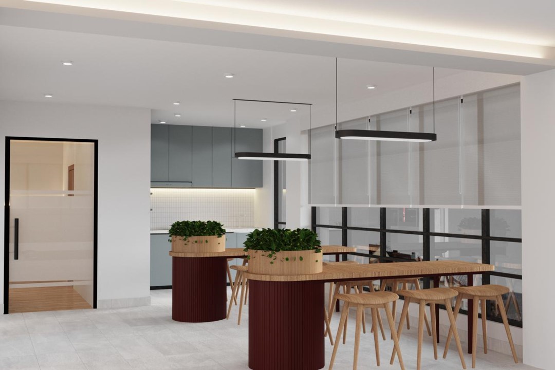 The five-story building masterfully combines functionality with comfort. The ground floor features efficient parking and an inviting lobby. The first floor is a bustling hub of open-plan offices and high-tech meeting rooms. The second floor offers additional flexible office spaces, enhancing productivity. The third-floor shines with a vibrant dining and recreation area, perfect for staff to relax and socialize. The top floor is a luxurious residence with a spacious living area, cozy bedrooms, and a rooftop terrace for enjoying panoramic views. Natural light and modern design elements infuse every level, creating a seamless blend of work and leisure.
